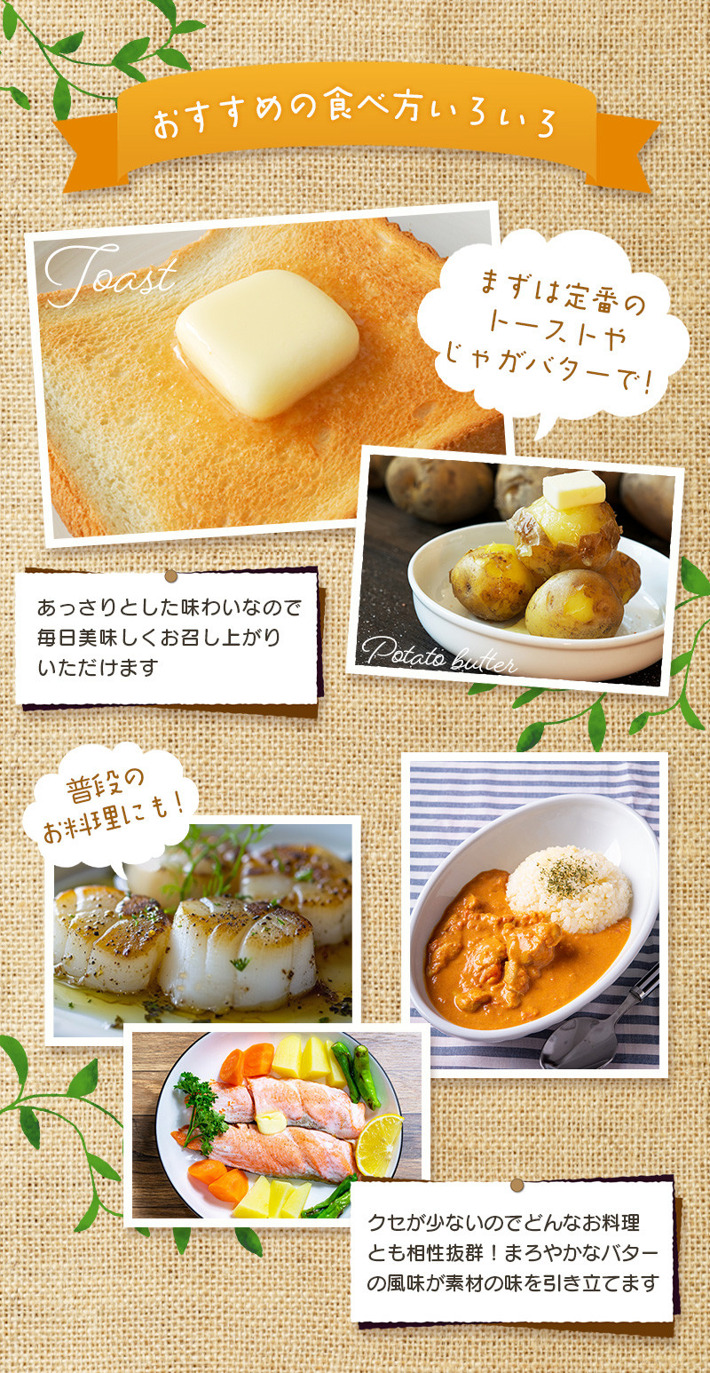 フタ付のビン容器で密閉性が高く、開封後の冷蔵庫庫内臭からバターを保護し、おいしさを持続します。