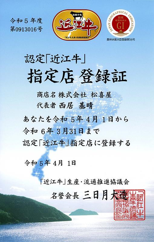 明治16年(1883)日本の近江牛のすき焼き屋の元祖として、東京で「松喜屋(まつきや)」が開店しました。当時「すき焼きは銀座の松喜屋」といわれ、「庄蔵」はこの松喜屋に近江牛を一手に納入しました。「銀座の松喜屋」は、明治・大正・昭和の三代にわたり宮内省御用達として、大膳寮に天皇が召し上がる牛肉(近江牛)を納めていました。
