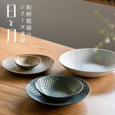 普段の何気ない料理がしっくりおさまる明山オリジナルの和柄模様のシリーズ食器「日と月」。 落ち着いたカラーと、伝統模様のような柄が、どこか懐かしさを感じさせる器です。