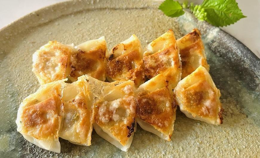 使用しているお肉は近江牛のみで、しかも雌肉にこだわって仕入れをしています。近江牛にキャベツ、にら等を加え、黒胡椒で味付けし、薄皮で包んだ一口サイズの餃子をつくりました。黒胡椒の「ピリッ」としたパンチのある味で、皮は「パリッ」とした食感が味わえます。具と皮が織り成す食感をお楽しみください。