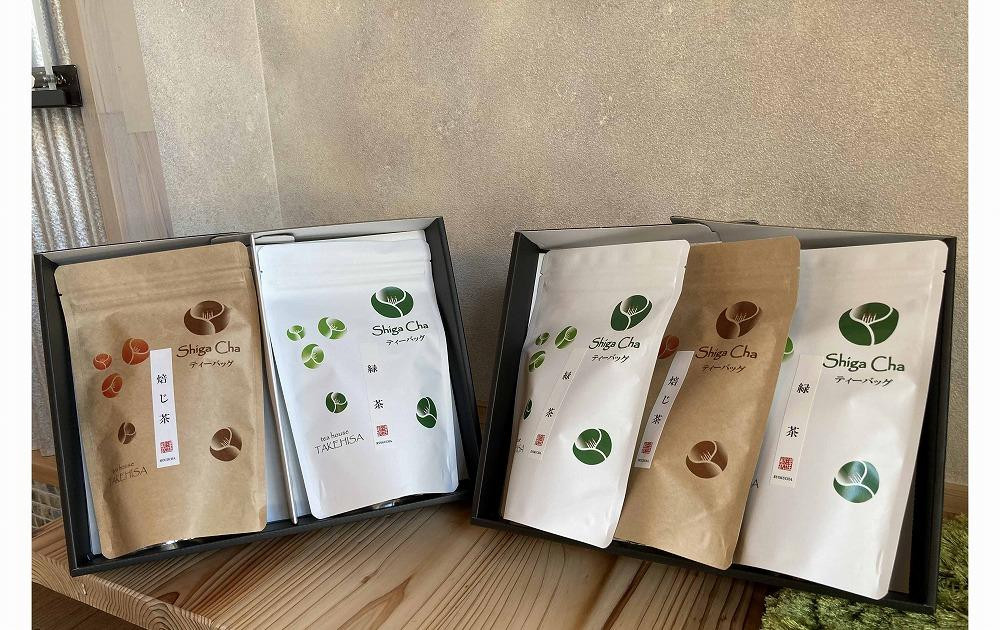 ShigaChaティーバッグセット2箱(緑茶30パック×3袋、焙じ茶30パック×2袋)