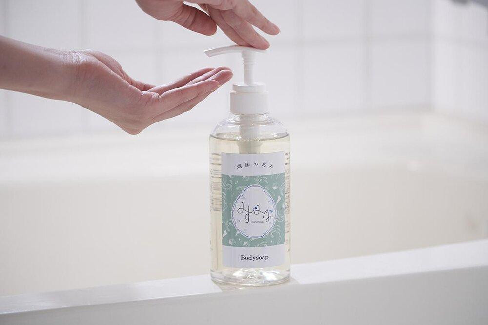 お湯を含ませたボディタオルやスポンジ等に適量を取り、泡立ててからご使用ください。その後すすぎ流して下さい。