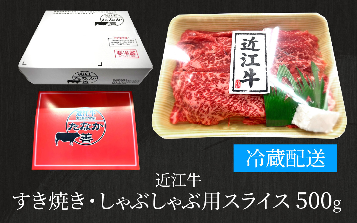A4ランク以上のメス牛のみを使用、きめ細やかな肉質と旨みお楽しみ下さい 近江牛 たなか善 すき焼き・しゃぶしゃぶ用スライス 約500g モモ 切り落とし 切落し 切り落し スライス すき焼き しゃぶしゃぶ 国産 冷蔵 肉 牛肉 ブランド 和牛 ブランド牛