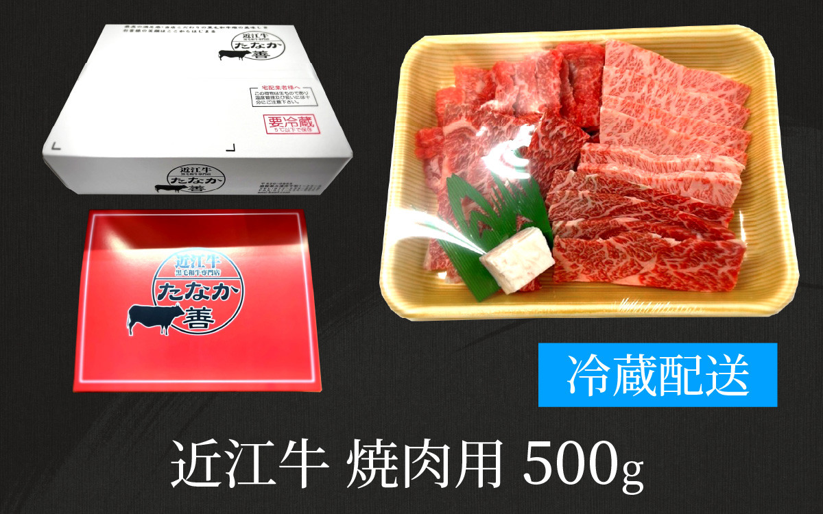 A4ランク以上のメス牛のみを使用、きめ細やかな肉質と旨みお楽しみ下さい 近江牛 たなか善 焼肉用 約500g ブランド 焼き肉 やきにく ギフト 国産 冷蔵 肉 モモ バラ 牛肉 和牛 ブランド牛