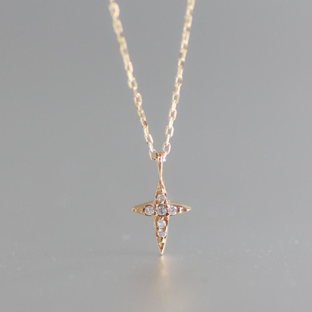滋賀県 大津市 琵琶湖湖畔の工房「銀工房」からお届けします、K10ダイヤモンド十字星ネックレス。