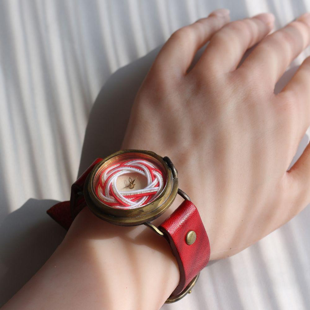 水引で作る【梅】の文字盤 ハンドメイドウォッチ 贈り物に心を添える伝統工芸品 ベルトカラー:赤 WJ007 梅-赤