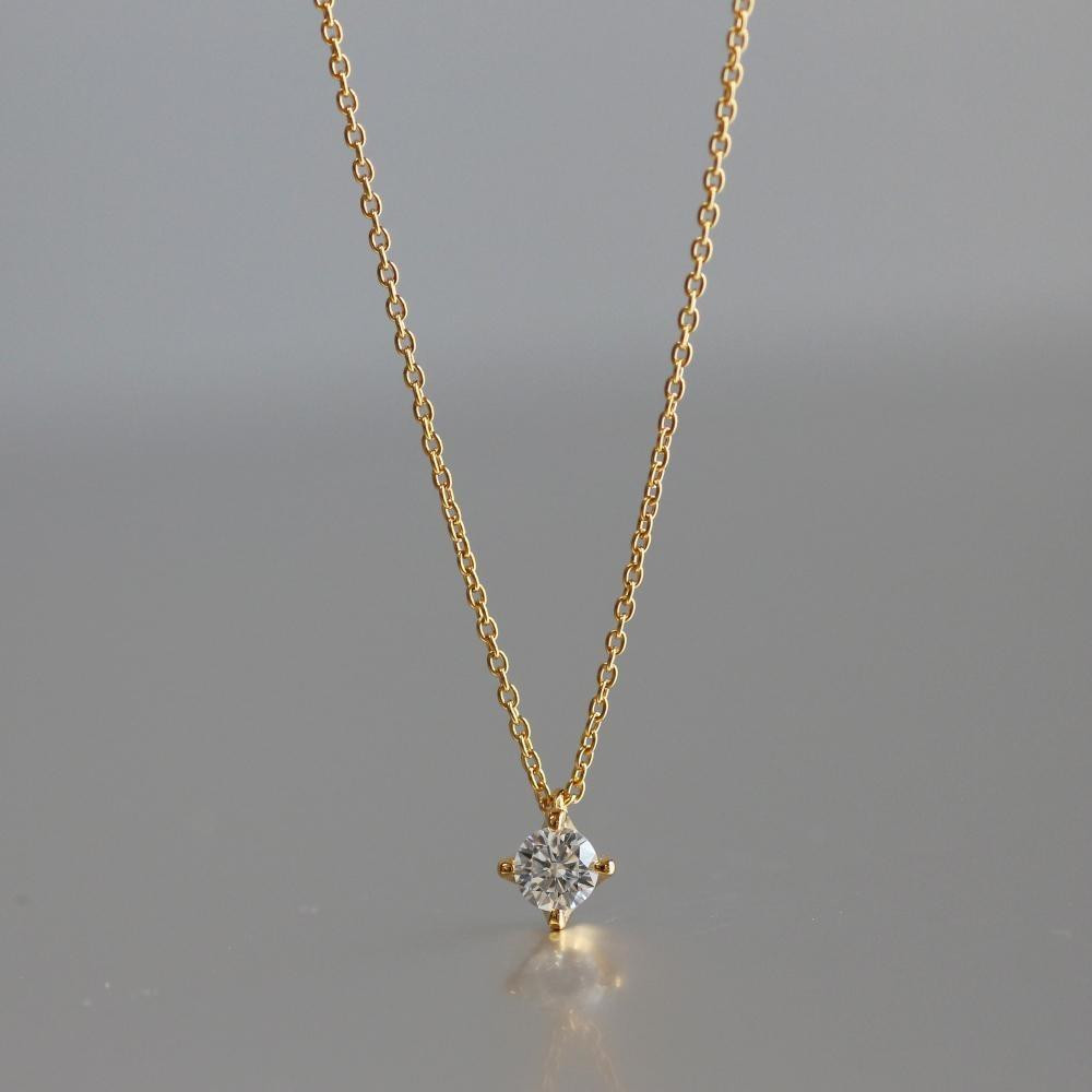 K18ゴールド【ラボグロウンダイヤモンドネックレス】0.2ct 4点…200,000 円 エコロジーをここから始める。 心も地球も豊かになるラボグロウンダイヤモンド。 エシカルなジュエリーでお手伝いする「ちょっといい」未来。 ラボグロウンダイヤモンドとは 天然のダイヤモンドと全く同じ構造をもつ人工石の事です。 研究所にて 「 LAB 」成長 した「 GROWN 」ダイヤモンド 「 DIAMONDS 」 ラボグロウンダイヤモンドと名づけられました。 人工石とはいえ、天然ダイヤモンドと完全に同じ成分で構成され、 プロの鑑定士であっても識別が難しいと言われるほどの品質がございます。 不純物を含まないピュアな輝きで、環境に優しく、生産過程がクリアなラボグロウンダイヤモンド。笑顔でサステナブルな未来になれるジュエリーをお楽しみください。 ネックレスの素材には親から子へ 子から孫へと受け継がれていく素材 GOLD K18を使用しています。 華やかなカラーリングでありながらも高級感のある上品な輝きで年代問わず楽しめる素材です。 3.8mm 0.2ct相当のラボグロウンダイヤモンドをより素敵なネックレスに仕上げる為、石枠は4点留めデザインにいたしました。 コロンとしたフォルムに仕上がるのが特徴の4点留めデザインは可愛さを上品さを兼ね備えたデザインでダイヤモンドを大きく見せる事もでき、 存在感あふれるネックレスとなります。 チェーンサイズは40cm。デコルテラインを美しく見せるサイズ感です。 3cmのアジャカンがついていますのでシーンやコーデに合わせて長さ調整が簡単にできます。 オフィシャルからカジュアルまで様々なシーンで大活躍でき、1本持っていれば大変心強い味方になります。 全て職人によるハンドメイド品でございますのでほとんどの修理に対応しています。 一生もののネックレスとして末永くご愛用いただけたら幸いです。 お届けはギフトにしても喜ばれるジュエリーボックスにお入れしてお届けします。 長期保管用としてもぴったりでインテリアにしても飾っておけるアイテムです。 ※配送時の破損防止やチェーン絡みを避ける為にチャック付きの保存袋に お入れした上でお届けいたします。 事業者:銀工房 連絡先:077-592-2480 【関連キーワード】アクセ ファッション 人気 おすすめ 送料無料 - 常温便