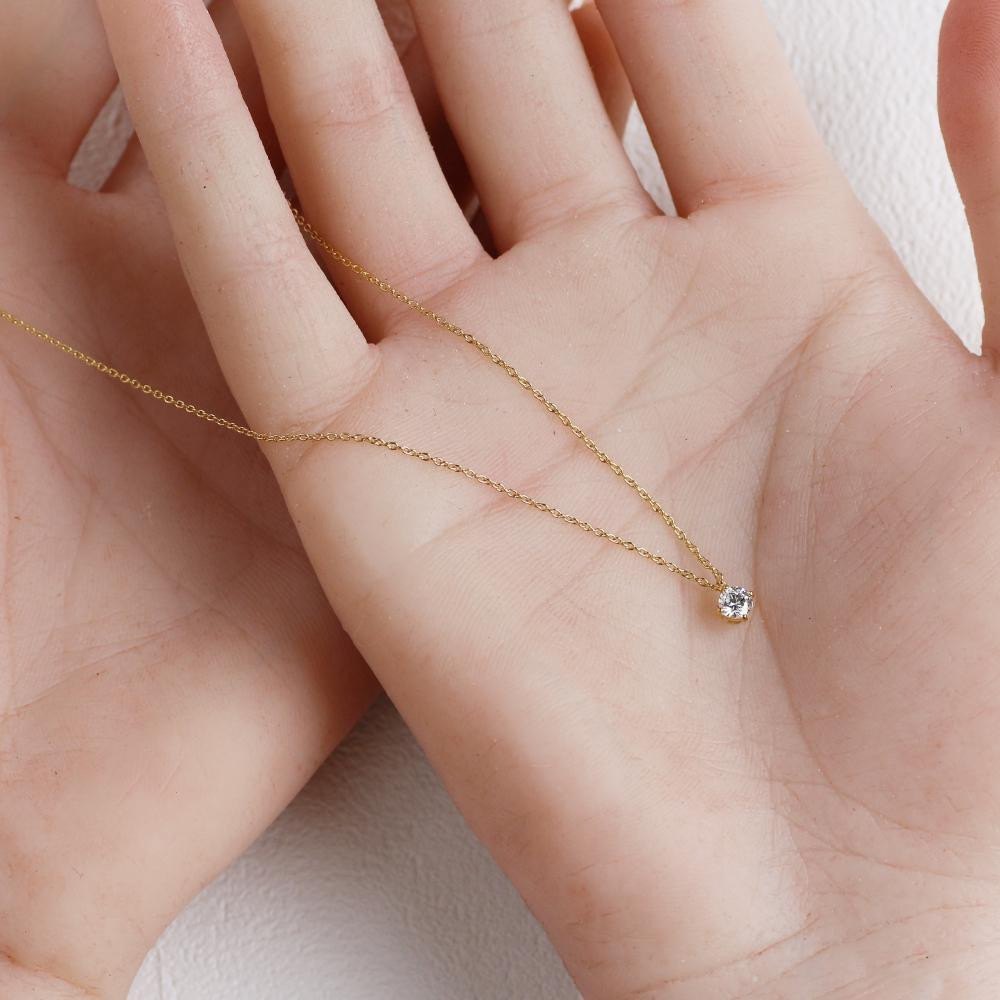 エコロジーをここから始める。 心も地球も豊かになるラボグロウンダイヤモンド。 エシカルなジュエリーでお手伝いする「ちょっといい」未来。 ラボグロウンダイヤモンドとは 天然のダイヤモンドと全く同じ構造をもつ人工石の事です。 研究所にて 「 LAB 」成長 した「 GROWN 」ダイヤモンド 「 DIAMONDS 」 ラボグロウンダイヤモンドと名づけられました。 人工石とはいえ、天然ダイヤモンドと完全に同じ成分で構成され、 プロの鑑定士であっても識別が難しいと言われるほどの品質がございます。 不純物を含まないピュアな輝きで、環境に優しく、生産過程がクリアなラボグロウンダイヤモンド。笑顔でサステナブルな未来になれるジュエリーをお楽しみください。 ネックレスの素材には親から子へ 子から孫へと受け継がれていく素材 GOLD K18を使用しています。 華やかなカラーリングでありながらも高級感のある上品な輝きで年代問わず楽しめる素材です。 3.8mm 0.2ct相当のラボグロウンダイヤモンドをより素敵なネックレスに仕上げる為、石枠は4本たて爪デザインにいたしました。 4本爪デザインはダイヤモンドをより大きく見せる事ができるのが特徴で エンゲージリングなどにも採用される人気デザインです。たて爪の輝きがとても上品で胸元を華麗に演出する事ができます。 チェーンサイズは40cm。デコルテラインを美しく見せるサイズ感です。 3cmのアジャカンがついていますのでシーンやコーデに合わせて長さ調整が簡単にできます。 オフィシャルからカジュアルまで様々なシーンで大活躍でき、1本持っていれば大変心強い味方になります。 全て職人によるハンドメイド品でございますのでほとんどの修理に対応しています。一生もののネックレスとして末永くご愛用いただけたら幸いです。 お届けはギフトにしても喜ばれるジュエリーボックスにお入れしてお届けします。 長期保管用としてもぴったりでインテリアにしても飾っておけるアイテムです。 ※配送時の破損防止やチェーン絡みを避ける為にチャック付きの保存袋に お入れした上でお届けいたします。 事業者:銀工房 連絡先:077-592-2480 【関連キーワード】アクセ ファッション 人気 おすすめ 送料無料