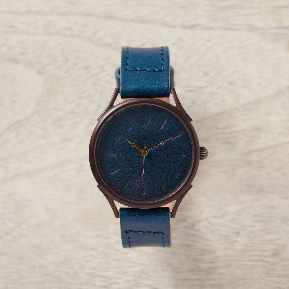 特産【近江牛革】で作るハンドメイドウォッチ サステナブルを時計から 文字盤・ベルトカラー:青 WJ013X 青-青