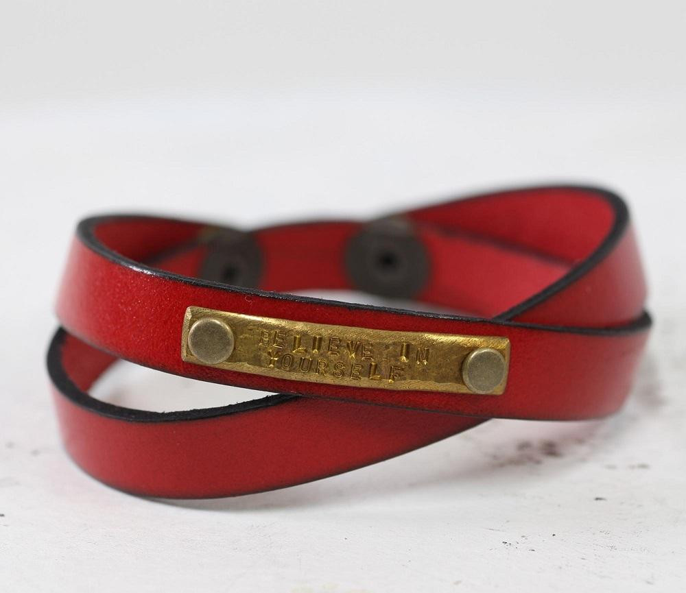 【格言メッセージが刻まれたプレート】イタリアンレース 牛革 レザーブレスレット ベルトカラー:赤 WL003 赤