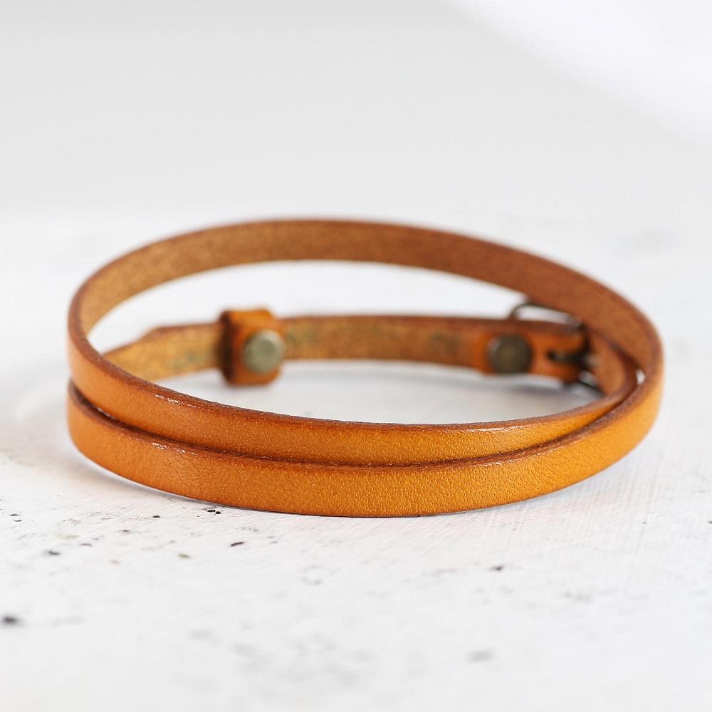 スリムでクールなレザーブレスレット 2重巻きレザーベルト 牛革 栃木レザー ベルトカラー:蜜柑 WL005-蜜柑