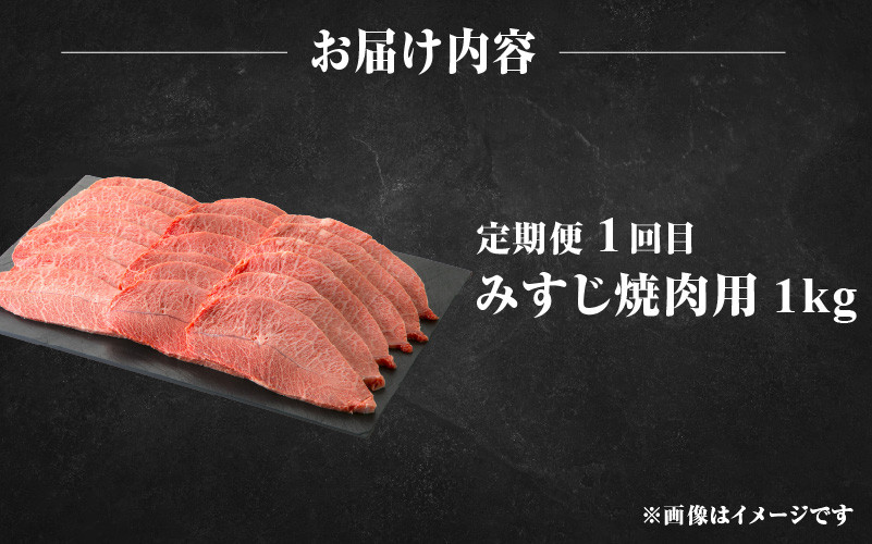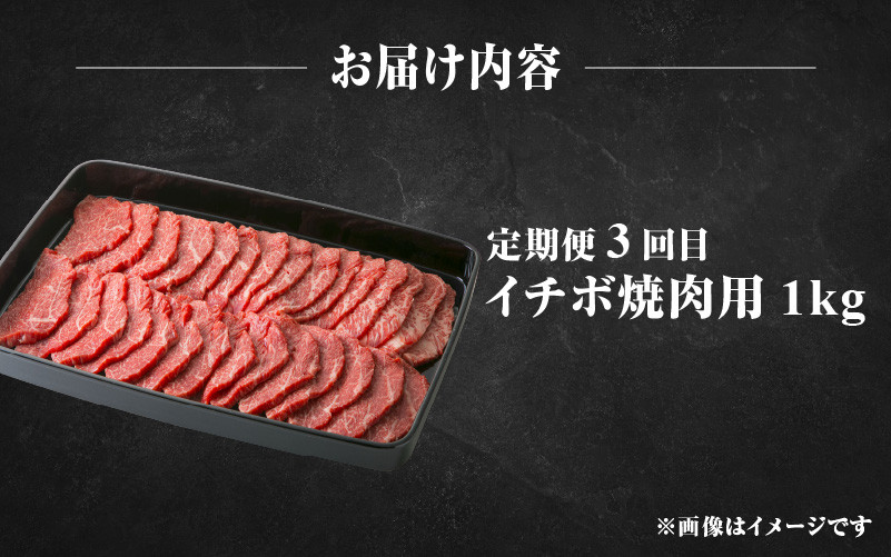 牛一頭から数kgしかとれない希少部位のイチボ、みすじ、特上カルビを焼肉用で3カ月間お届けします。