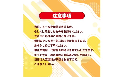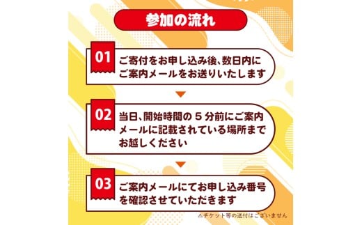 その際にお申し込み番号を確認させていただきますので、ご案内メールが確認できるスマートフォンかメールを印刷したものを必ずご持参ください。
