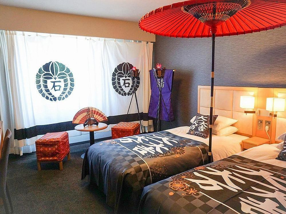 お部屋は大人気ご当地ルームの石田三成ルーム、ツインタイプ20平米(禁煙)となります。