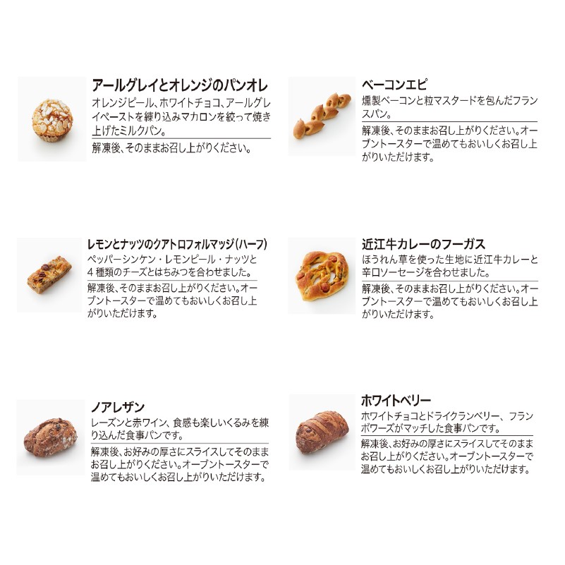 色々な種類のパンがあり、それぞれ冷凍と思えない美味しさでした!一緒に送った母親もとても喜んでいました。また注文させていただきます。