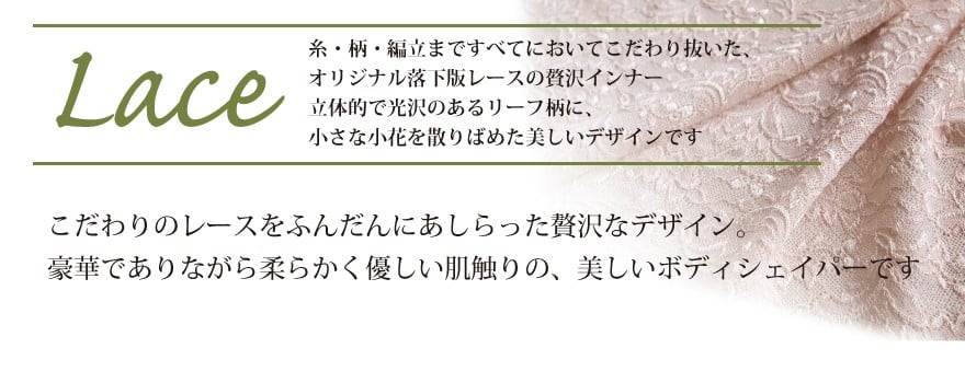 豪華でありながら柔らかく優しい肌触りの、美しい補正下着シリーズです。