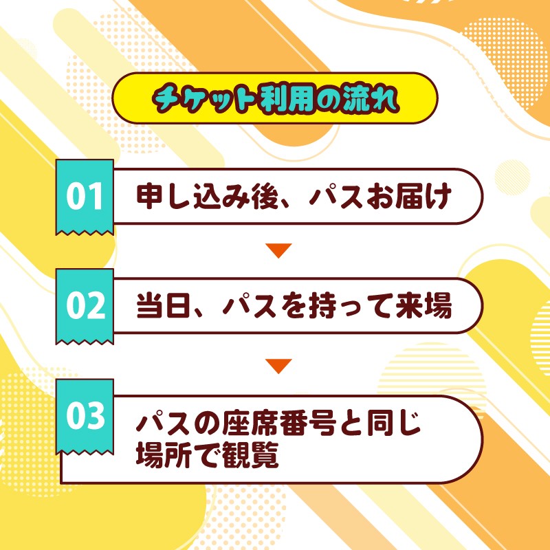 エリア入場後、パスに記載のある番号の座席で、ステージをご観覧ください。