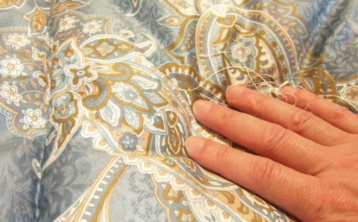 真綿の成形、表生地に入れ、縫製し、布団に仕上げるまでの工程を区域内で行っている。