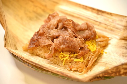 系列飲食店で人気の「近江牛すき焼き鍋」の味を手軽にお楽しみいただけるようおこわに仕立てました。厳選したA4ランクの近江牛を自家製の割り下で煮込み、だしをきかせたおこわにトッピング。滋賀県産羽二重糯と地元産の近江米をブレンドしたおこわはもっちり食感で、竹の皮の芳しい香りがよりいっそう風味を引き立てます。