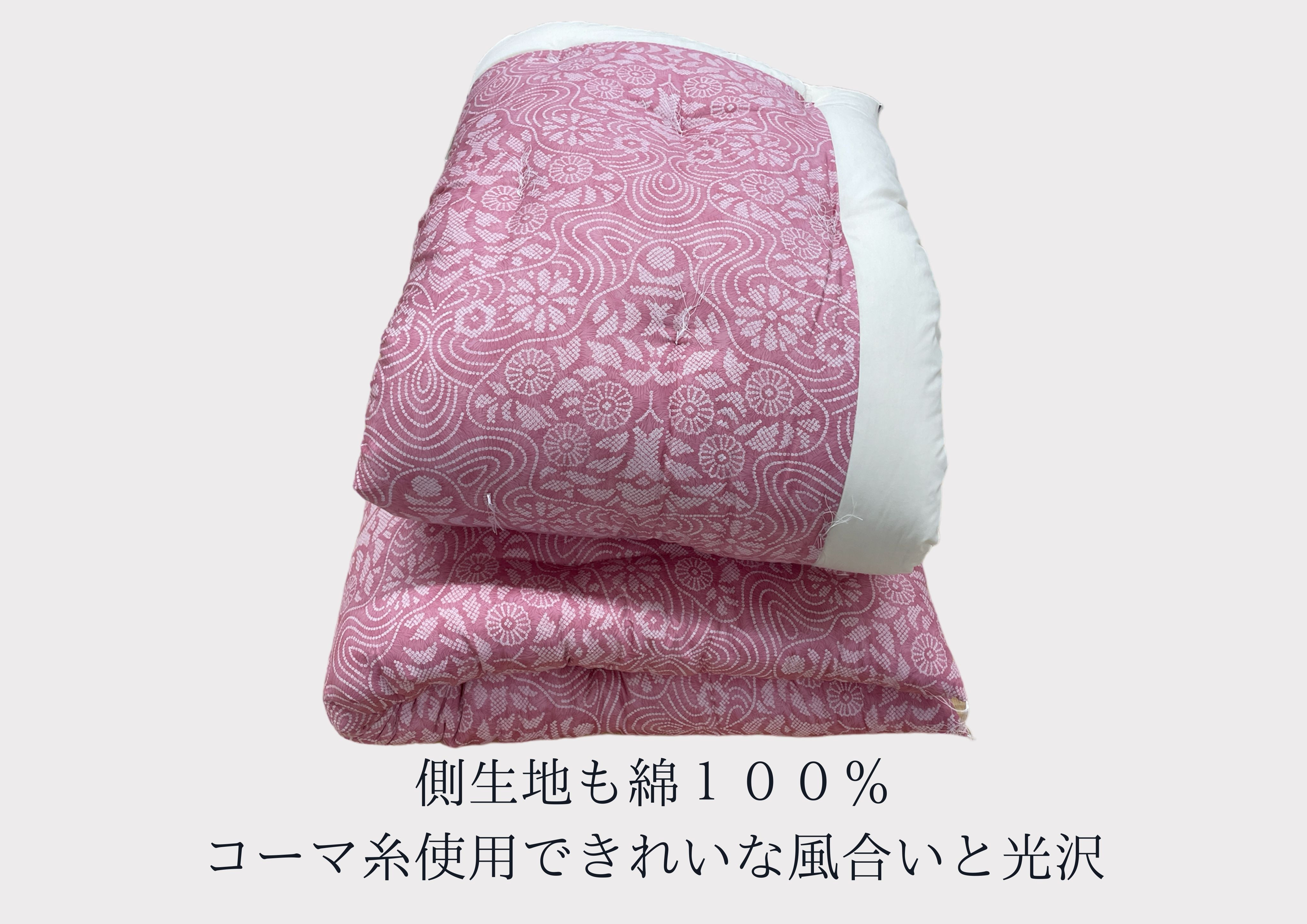 チョイスPayポイントと交換できる品 ワタセが熟練の技で真心仕立いたします。 極上純綿 もめん布団 掛敷セット (菊水柄・ピンク)【CW115W】