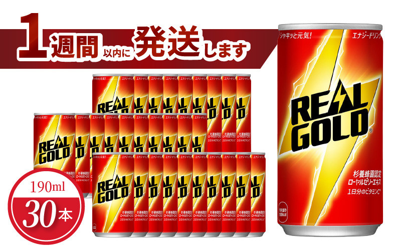 リアルゴールド 190ml缶(30本入)ビタミン補給 ローヤルゼリー エネルギーチャージ 炭酸飲料 栄養ドリンク