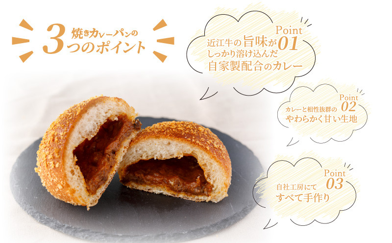 日本三大和牛「近江牛」を使用した焼きカレーパンです。 近江牛焼カレーパンセット お惣菜パン 近江牛の旨味 朝ごはん おやつ 焼カレー 近江牛 カレー