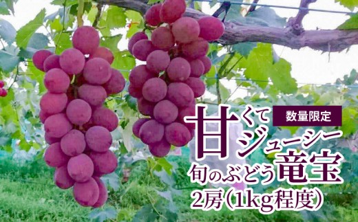 先行予約受付中!お届けは8月以降です! 【数量限定】甘くてジューシー産直 旬のぶどう竜宝 2房 (約1.0kg)【7月末~8月中旬お届け】 DL-0003