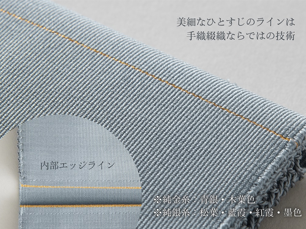 綴織の生地は、軽量でありながらも強度は高く、毎日持ち歩く名刺入れに適しています。