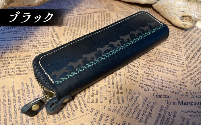 馬9頭を革に焼き印を捺して「うまくいく」という縁起の良いデザイン。 雑貨 【選べるカラー】馬九いくキーリング(ブラック)&馬九いくラウンドファスナーペンケース / 競馬 馬 競走馬 本革 革小物 革製品 キーリング ペンケース 手作り ハンドメイド レザー / 栗東市 / 株式会社ブルズエフ [BIAU007]