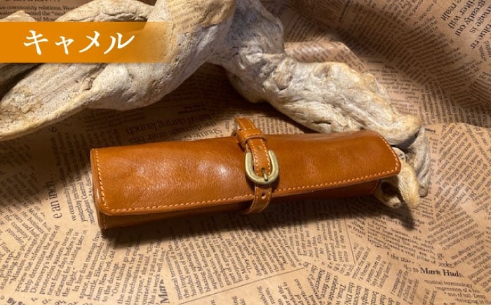 蹄鉄バックルロールペンケース(キャメル) 栗東市 / 株式会社ブルズエフ [BIAU307]