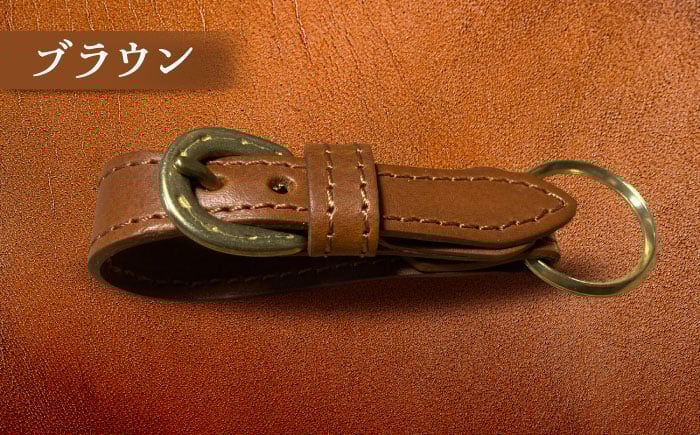 真鍮製の蹄鉄バックルと二重リングを使用したキーリングです。