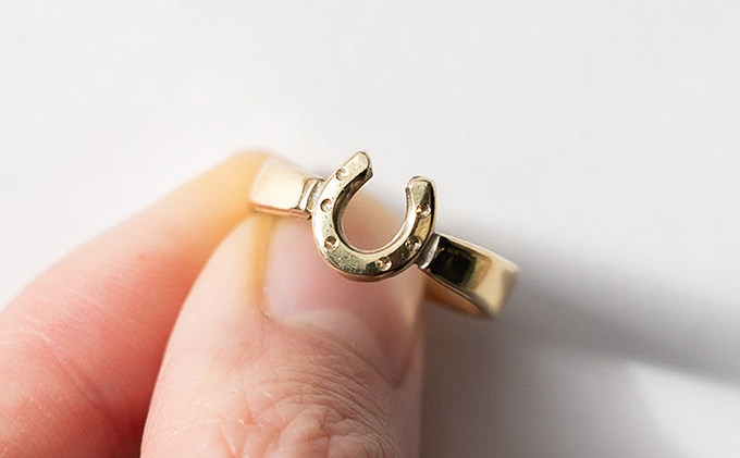 JRA開業装蹄師の手作り馬蹄アクセサリー 馬蹄リング 真鍮 太め 13号 ハンドメイド アクセサリー ゴールド カラー 栗東市 / norim [BIBP045]