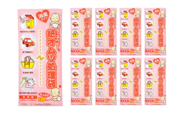焼却時に有毒な塩素系ガスを発生しない、環境にやさしい素材 消臭 紙オムツ処理袋 ウィズベビー 120枚入×8個 栗東市 / 株式会社サンシャインポリマー [BICD005]