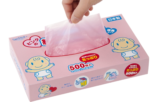 ・ティッシュのようにスムーズに取り出せる便利な消臭袋(袋の色:ピンク)
