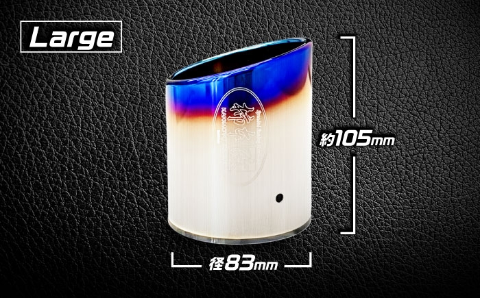 実際のマフラーのテールに使用されており、インナーカール・スラッシュテールにチタンフェイス加工と、柿本改のロゴ入り。自宅や職場、車内など、どのシーンでもインテリアとして圧倒的な存在感を放ちます。