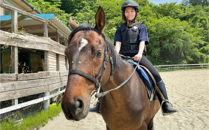 今回の体験はビギナー向けの内容となっており、難しいポールの飛び越えなどはございません。お客様の熟練度に関わらず、どなたでも同じように楽しんでいただける内容ですので、初めての方でも安心して馬とのふれあいを体験していただくことができます。