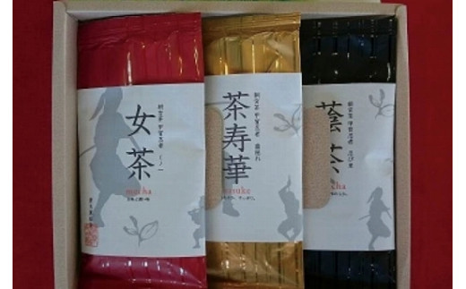 茶寿華(煎茶)・女茶(芽茶)・蔭茶(かぶせ茶)の3本セット。