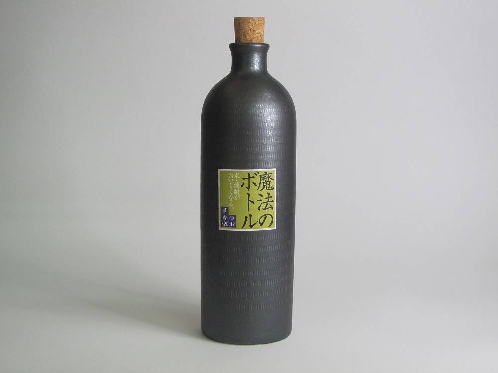 入れた物の性質を変える力を持つ「魔法のボトル」は、自然界に存在する天然鉱石を釉薬に使用し、信楽の粘土で成形されています。 天然鉱石は、マイナスイオン作用で健康に効果があると注目されているラドン温泉源の鉱石と同じ組成のものです。 ラドン温泉の効果を上げる物質はラドンだと思われていましたが、主に天然鉱石から出るマイナスイオン効果だったことが近年わかってきました。 この天然のイオン発生物質により、例えば酒類ならアルコール分子の周りに、整列した水分子が取り囲み、味をまろやかにすると言われています。何年も寝かすお酒は、この効果を期待されているようです。 自然放置なら何年も必要ですが、魔法のボトルに入れると、天然鉱石の攪拌作用により促進されると考えられます。 また、魔法のボトルに入れた水は、天然鉱石の攪拌作用により水分子が絶えず細かく動いていると考えられます。この作用でボトルの中の水はイオン化し【川のせせらぎ状態】のように、美味しく感じられます。 さらに、水道水に含まれるカルキの分解も促すため、カルキ臭さもなくなります。 ※味の変化の感じ方には個人差があります。 ※予備のコルクを1個お付けいたします。