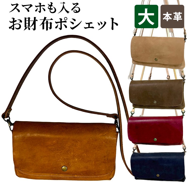 【本革】スマホも入るお財布ポシェット(大)
