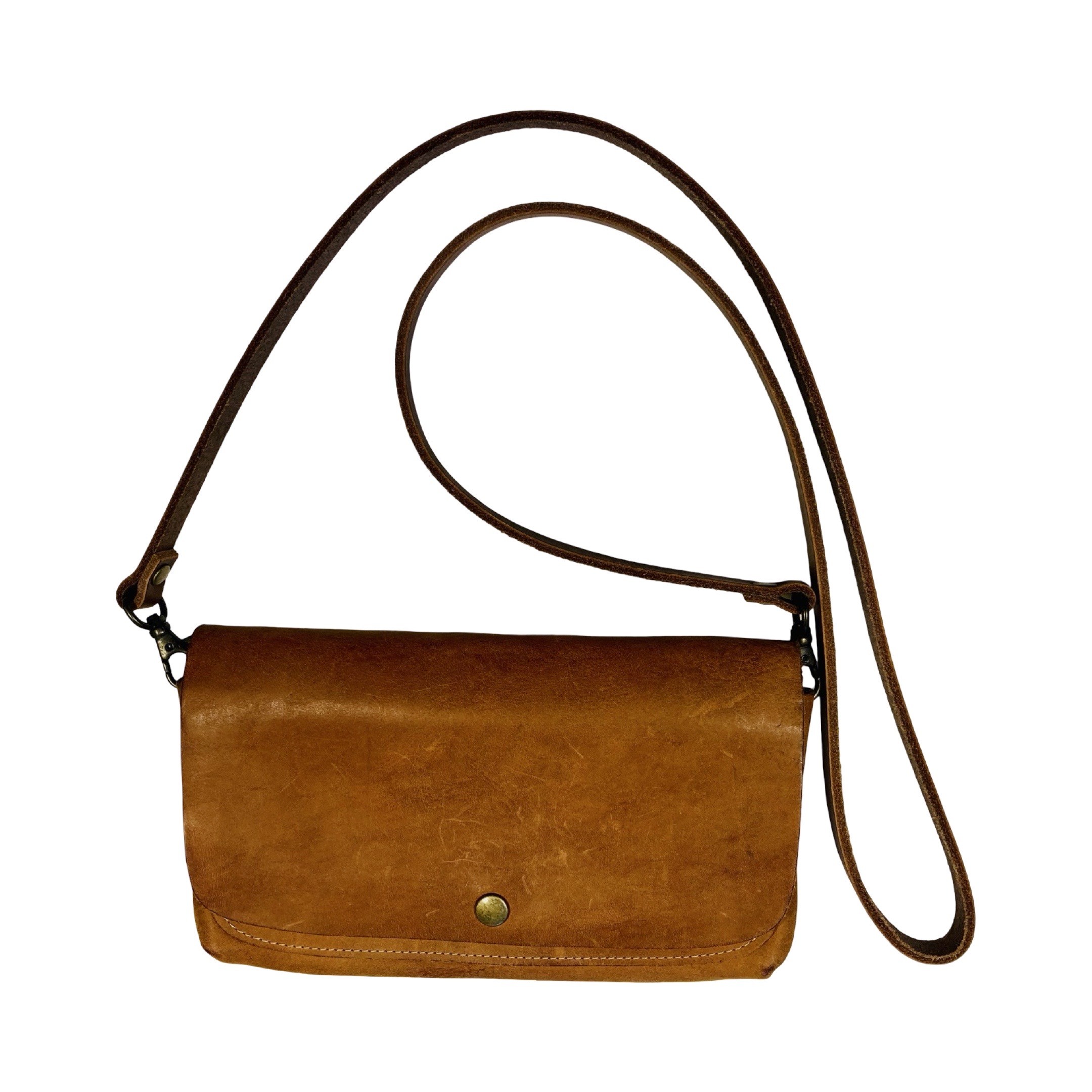 本革(牛革・タンニン鞣し・ワックスヴィンテージ仕上げ)を使用したオリジナルでシンプルなお財布ポシェットです。