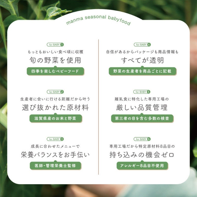manmaは滋賀県産の旬の農産を使用したベビーフードシリーズです。