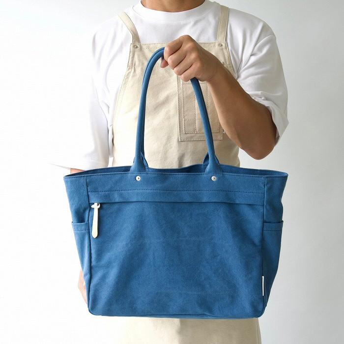 『 MEDIUM TOTE / BLUE 』 シンプルで飽きの来ないデザイン、様々なシーンに合わせやすいトートバッグです。 使用する帆布生地はバイオウォッシュ加工をほどこした11号帆布で、ナチュラルな色ムラと肌触りの良いソフトな風合いが特徴。 内外に大小5つのポケットを備えた整理上手なバッグです。普段使いから通勤、通学にも使用できます。 ◆ヴィンテージ(バイオウォッシュ)加工をほどこした上質な 11 号帆布を使用 ◆使い始めから手に馴染む柔らかな風合いと、程よい色落ち感 ◆軽さと丈夫さを兼ね備えた作り ◆内外に大小 5 つのポケットがあり整理上手 ◆普段使いから通勤・通学にも◎ ●デザイン&特徴 ・シンプルでカジュアルなスタイルに合わせやすいトートバッグ ・長財布やスマートフォンなどの身の回り品に加え、水筒&お弁当なども入るサイズ感 ・5つのポケットで”整理上手”な作り ・コーデの差し色として明るいカラーをお選びいただくのもオススメ ●ラッピングについて ・基本的に簡易包装となっております。 ・サイズの大きい製品については、折りたたんで包装させていただきます。