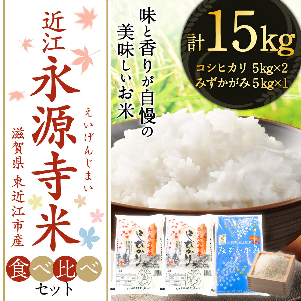 鈴鹿山脈からの清らかな水と、豊かな土壌で育った近江永源寺米コシヒカリとみずかがみ 近江永源寺米食べ比べセット 計15kg 株式会社カネキチ 滋賀県 東近江市 E04 米 15kg 食べ比べ コシヒカリ みずかがみ 近江米