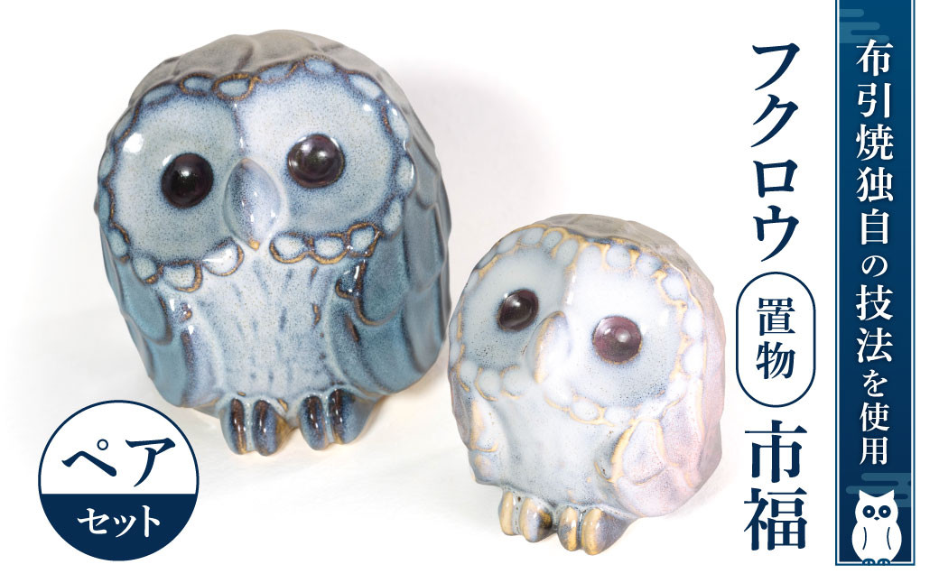 大切な方への贈り物や、お部屋に幸せを運ぶ縁起物としていかがですか。 フクロウ置物「市福」ペア 株式会社 布引焼窯元 滋賀県 東近江市 C16 フクロウ 置物 縁起物 焼き物 陶器 ペアセット 幸福 ギフト 新築祝い 記念品