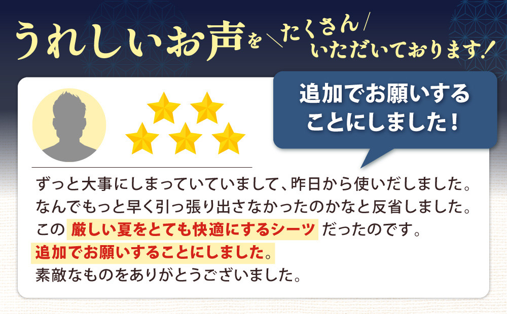 真夏の寝苦しい夜も、肌触りの良い麻のシーツが、快適な眠りをお届けできれば幸いです。