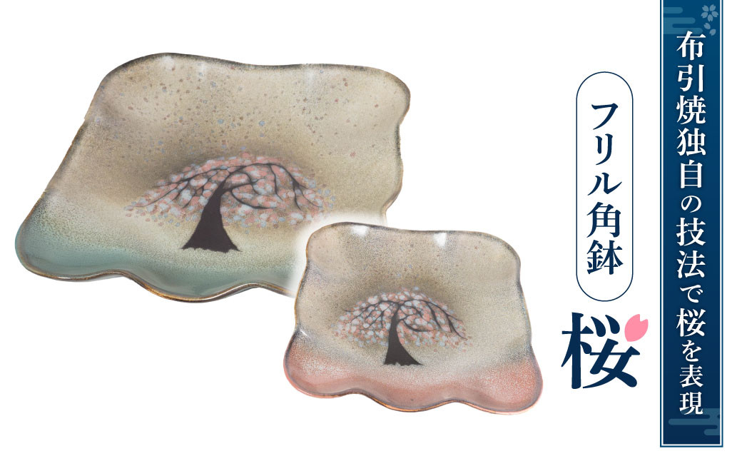 B11 フリル角鉢「桜」(グリーン、ピンク) 株式会社 布引焼窯元