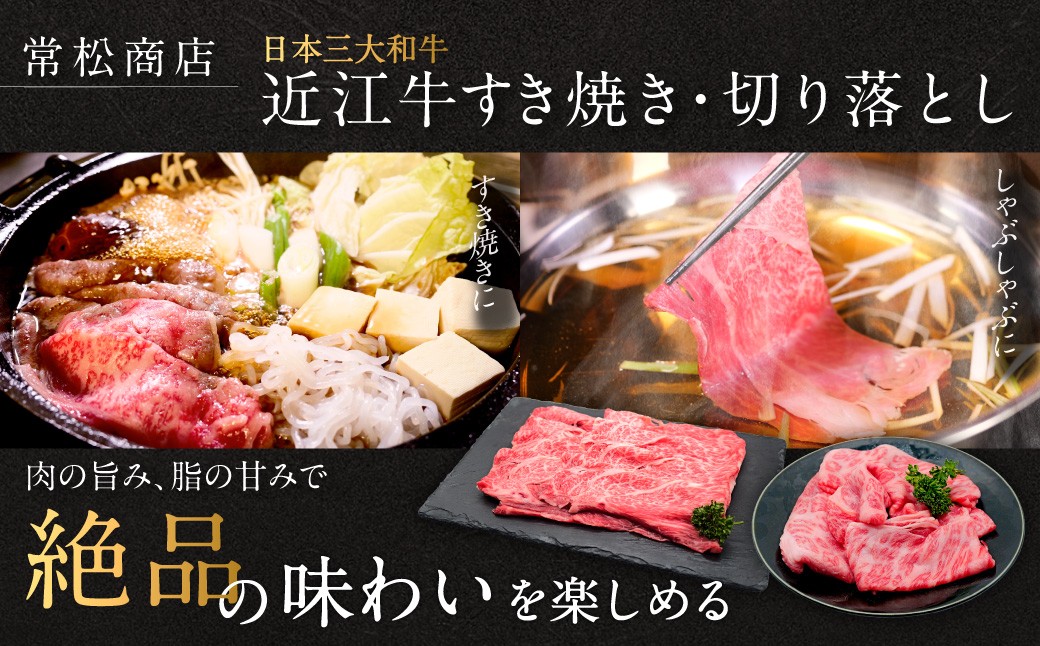 霜降りのとろける食感と赤身の深い味わいをご堪能ください。 近江牛 すき焼き用500g 切り落とし300g セット(計800g) 3~6人前 有限会社 常松商店 滋賀県 東近江市 C-B07 ブランド牛 和牛 厳選 肉 霜降り 赤身 国産 高級 すきやき 焼肉 しゃぶしゃぶ 冷凍 ギフト 贈答 送料無料