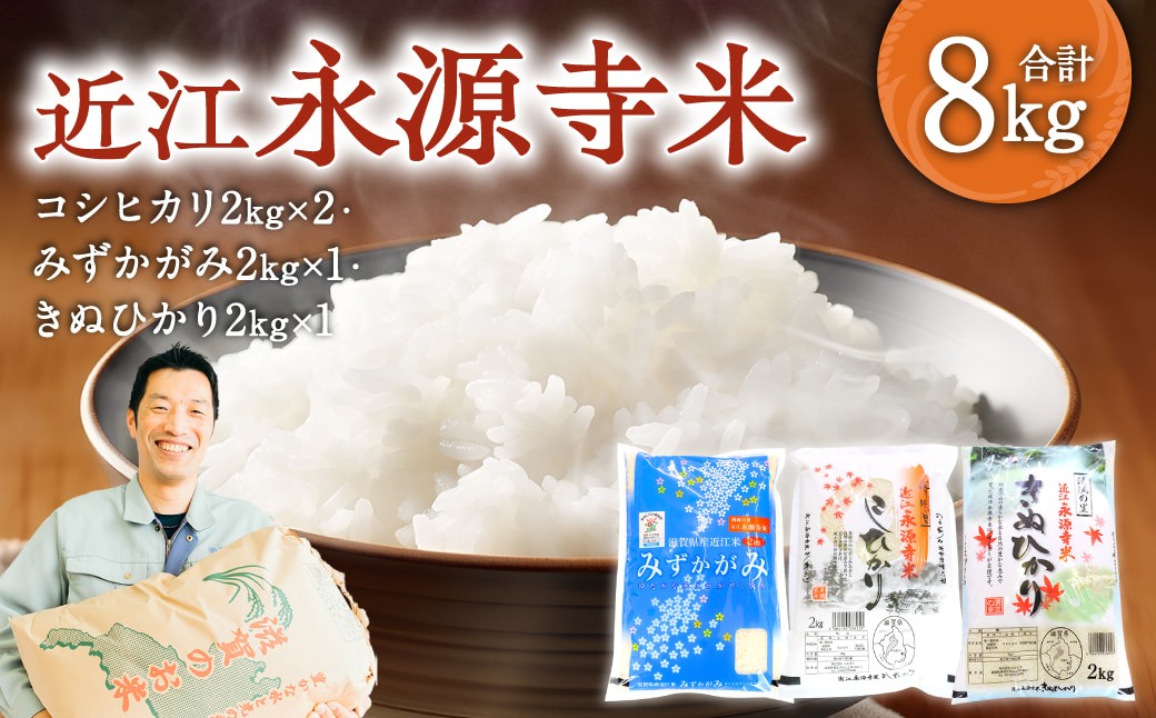 3種それぞれの自慢の味と香りを堪能できる食べ比べセット 近江永源寺米コシヒカリ みずかがみ キヌヒカリ食べ比べ 8kg 株式会社カネキチ 滋賀県 東近江市 C06 米 近江米 3種