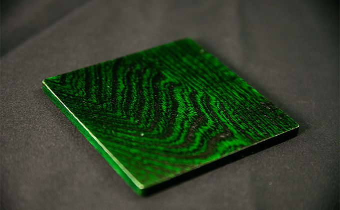 透明感のある”独特の艶”をもった漆を、木に馴染むまで塗っては乾燥させる作業を何度も重ね、透明感とケミカル感のある不思議で独特の風合いをもったコースターです。