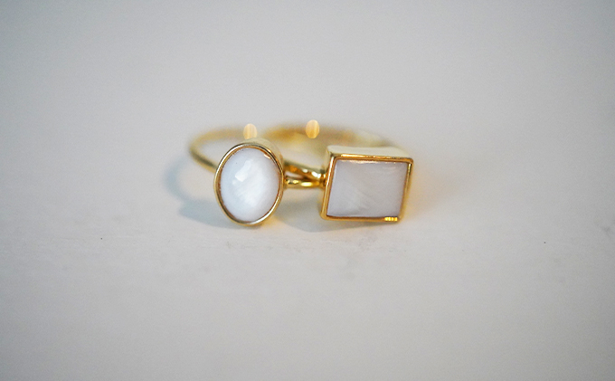 滋賀県の琵琶湖で生産される琵琶パール。その母貝である池蝶貝(イケチョウガイ)を手作業で加工し制作したハンドメイドのリングです。